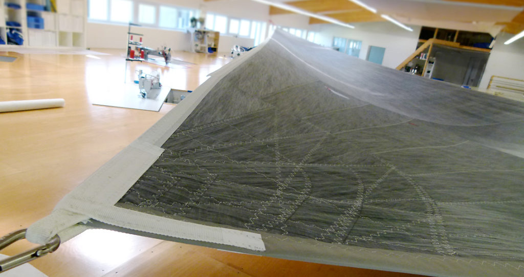 Ein Laserplotter sorgt für die absolut präzise Reproduktion von Segeldesigns die an 7 modernen Nähplätzen produziert werden. Moderne Laminate werden mit einer Ultraschallmaschine zu formvollendeten Segeln zusammengefügt.